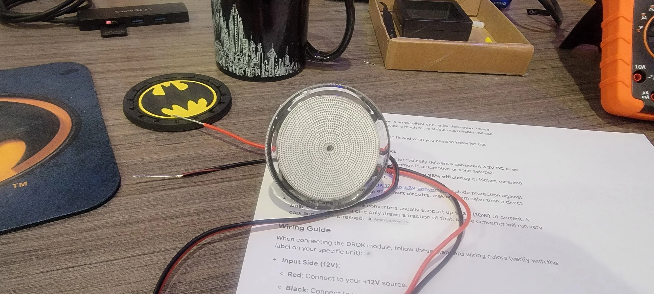 I just installed the LED lighted Bat logo today in our home office, it looks fantastic and adds great character. So far everything is working perfectly; lots more upgrades coming soon!